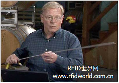 Rodgers將與 RFID 標(biāo)簽相連的溫差電偶放入用于冷卻葡萄汁的大桶里