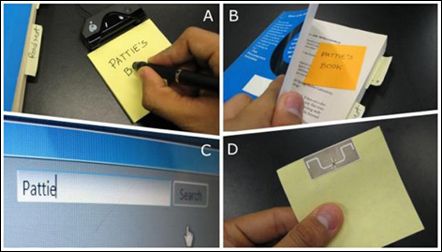 也許有很多關于改造Post-it note的產品,但最近MIT(麻省理工)研發出一個基于Post-it note的"便條紙",能為Post-it note用戶提供很大的便利。該產品使得Post-it note能脫離桌面操作,改成基于一個數字筆和一個特殊的便條紙的操作方式。你只要在這個內嵌了RFID技術的便條紙上寫字就可以通過OCR(光學字符識別)把所寫的內容傳到電腦上。操作類型與一般的手寫板非常容易上手。這使得Post-it note在真正意義上實現了便條紙的功能,得到更實際的應用。