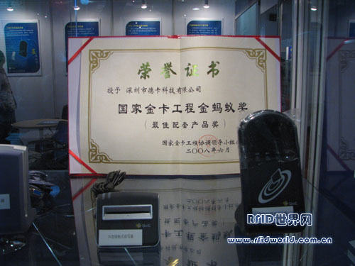 同時,德卡科技還在此次展會捧回了國家金卡工程協調領導小組頒發的國家金卡工程金螞蟻獎的“最佳配套產品獎”。