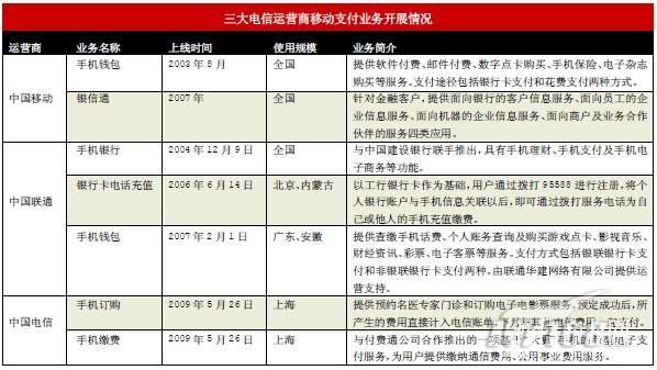 2009年,電信運營商、銀行、第三方支付公司都分別推出了自身為主導的手機支付業務——2009年4月,中國聯通上海公司推出公交卡手機,在手機內部植入了NFC芯片,在乘公交車、軌交、出租車時,可直接用手機進行刷卡扣費。6月,交行推出新一代手機銀行——e動交行,知道對方手機號就能轉賬;11 月10日,支付寶手機支付業務亮相,用手機可向對方支付寶賬戶付款和繳納水電氣費;12月,中國電信江蘇公司“翼卡通”業務在南京和蘇州投入商用,刷“天翼”手機便可直接乘坐公交車、地鐵和購物。據統計,去年僅上半年中國手機支付用戶就突破1920萬戶,實現交易6268.5萬筆,支付金額達170.4億元。