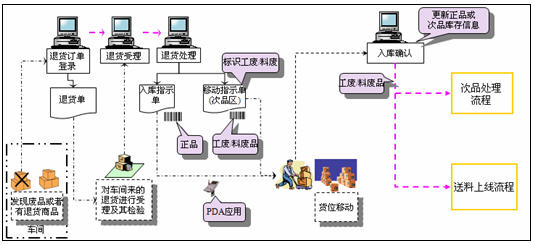 根據(jù)實(shí)際退貨情況,掃描退貨物品條碼,導(dǎo)入系統(tǒng)生成退貨單,確認(rèn)后生成退貨明細(xì)和帳務(wù)的核算等。