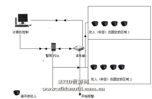 2. 系統(tǒng)可以設(shè)定虛擬的警戒范圍,當(dāng)某個(gè)犯人離開犯人境界的區(qū)域范圍,讀寫器或者警用PDA讀不到某個(gè)犯人電子標(biāo)簽就自動發(fā)出警報(bào)。利于職能化的管理。