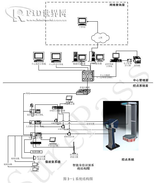 完整的FFPTS 系統(tǒng)包括RFID 采集系統(tǒng);顯示及操作系統(tǒng);自動(dòng)控制系統(tǒng);圖象采集及處理系統(tǒng);證件管理及制證系統(tǒng);中心監(jiān)控系統(tǒng);中心管理系統(tǒng);中心數(shù)據(jù)庫(kù);網(wǎng)絡(luò)及通信系統(tǒng);網(wǎng)上工作系統(tǒng);加密系統(tǒng);其他應(yīng)用系統(tǒng)(人員定位系統(tǒng),考勤系統(tǒng),查詢統(tǒng)計(jì)系統(tǒng)等等);地面框形天線等系統(tǒng)。
