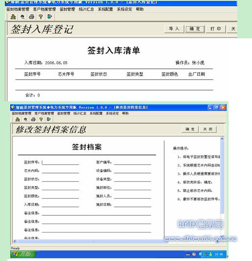 在智能簽封采購(gòu)入庫(kù)時(shí),計(jì)量部門可直接將簽封唯一序列號(hào)和表面序號(hào)的電子化文檔導(dǎo)入到簽封數(shù)據(jù)庫(kù),生成電子化的簽封檔案。此后對(duì)簽封的每項(xiàng)操作均會(huì)自動(dòng)記錄并存檔保留(所有操作均可追述),解決了傳統(tǒng)的依靠手工記錄并存檔保留的煩瑣工作,真正實(shí)現(xiàn)了簽封管理的電子化。