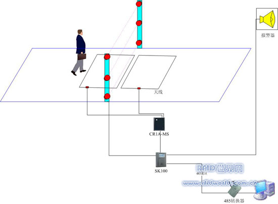 系統(tǒng)可及時(shí)識(shí)別尾隨在合法人員后面試圖進(jìn)入通道的非授權(quán)人員,并給予聲光報(bào)警。因此,本系統(tǒng)即保證了合法人員的快速通過(guò), 又能防止非授權(quán)人員尾隨進(jìn)入。