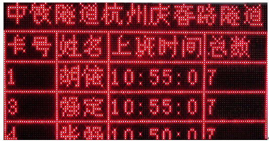 隧道中LED考勤顯示屏數(shù)據(jù)部分截圖