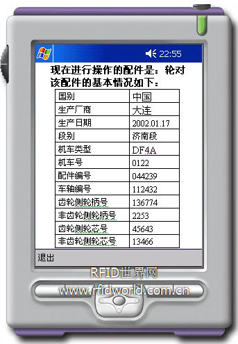 在具體對配件操作時,系統將會根據電子標簽內的ID號,自動檢索、顯示出當前配件的類型和基本信息。