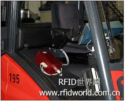 在叉車底部安裝 RFID閱讀器以讀取地板里的 RFID標簽