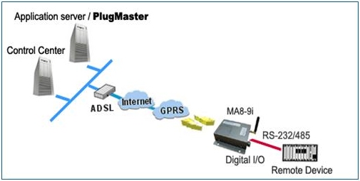 解決方案Helicomm的MA8-9i GPRS無線通信終端,由于具有工業級的工作溫度范圍及非常小的待機功耗,很好的解決了珠峰上環境惡劣,溫度低,只能用電陽能供電等所帶來的一系列問題。此系統主要由風速儀/自動氣象站等氣象設備,搭配MA8-9i GPRS終端,后臺服務器和應用程序組成。MA8-9i GPRS終端提供232接口可直接連接采集設備并將數據通過GPRS網絡傳送至中央控制中心分析。MA8-9i并提供短信備援機制,讓氣象單位可以隨時得到更完整的氣象資料。