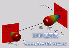 而當讀取器接收到從標籤反射出足夠強的回波(即Signal Power大于某門檻值)時,則代表此標籤可以被讀??;但若要建構較為真實的模型,則還要根據標籤天線面的方向與讀取器天線面的方向來建構。即根據天線面製作出與角度有關之天線增益場型(Antenna Gain Pattern)。在此為說明方便,不考慮天線面積,新的模型可依舊的模型加上空間幾何的關係。