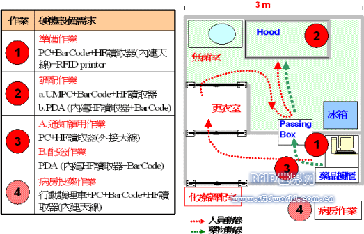 圖2、醫(yī)療輸注液準(zhǔn)備流程RFID技術(shù)應(yīng)用作業(yè)情境圖