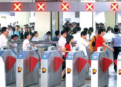 “請右手持卡”、“請在白線外刷卡”,這是昨天早上約4000名地鐵工作人員和志愿者喊得最多的兩句話。昨早,北京地鐵自動售檢票(AFC)迎來了端午假日后的首個上班高峰。地鐵公司表示,雖然有些乘客對刷卡系統還有些陌生,甚至是“手忙腳亂”,但AFC系統“遭遇”的首個上班早高峰最終是平穩度過。