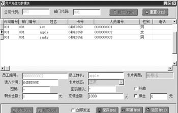 發卡本著一人一卡的原則。發卡管理系統包括操作員權限管理、人事管理、卡片管理、通訊管理及數據備份與恢復等功能模塊。