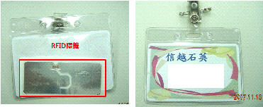 主要作法是在作業工單釘付UHF頻段的RFID標簽(圖1),并于主要制程的出入口架設RFID讀取設備及顯示銀幕(圖2)。當作業人員攜帶附有RFID卷標之作業工單及石英原料進出各制程時,出入口的RFID讀取設備即自動讀取工單上的卷標并紀錄時間,如此便忠實的將各制程進出所花費的時間予以紀錄下來。