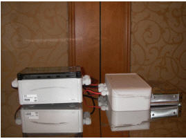 因為晶圓盒進出搬運時采紙箱包裝,有兩個或一個晶圓盒裝成一個紙箱中,并堆棧于棧版上,因此我們需尋找能夠容納南茂棧版寬度通過且能達到讀取卷標的天線。依照南茂棧版寬度120cm要求下,我們測試德國FEIG LR2000型號RFID讀取器與天線(圖4)發現他的有效讀取距離可以達到160cm,因此我們設定在140cm作為閘門寬度(圖5),一方面可以顧及到RFID讀取率,另一方面也不會因閘門天線的架設而影響原先廠內設備移動的動線規劃。