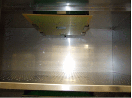 因此當南茂導入RFID技術后,首先可以取代工作流程清單的角色,經由RFID標簽編號可以串起晶圓盒相關作業信息,同時經由儲存于信息系統之中,減少無塵紙張成本的支出。另外就是取代人工輸入測試晶圓批號參數,改由RFID感應晶圓盒上卷標信息自動輸入測試系統,下載測試程序,減少人為錯誤輸入所引起的問題。在這里我們采用FEIG MR200接上天線板,此天線板固定于測試機臺承載測試晶圓置放處(圖18、19),當測試晶圓進行測試時,晶圓仍置放于晶圓盒內層拖盤上,整個內層拖盤會置入測試機臺之中,故內層拖盤上的RFID標簽會被感應回報晶圓相關信息給測試系統。
