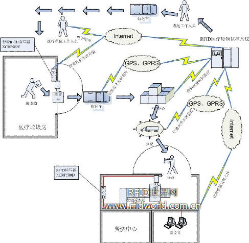 醫(yī)療廢物RFID監(jiān)控系統(tǒng)的主要運作流程: