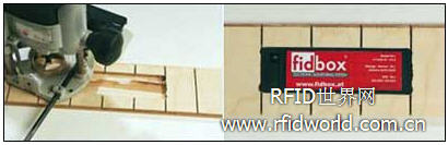安裝 fidbox 時,工作人員在一塊地板底面切開一小塊,采用粘貼膠帶將感應(yīng)器貼在里面,接著木質(zhì)地板和內(nèi)嵌 fidbox 放置在飾面混凝土上方。