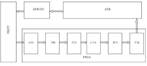 5. 由FPGA實現(xiàn)的功能為:補碼變換,差分處理,F(xiàn)IR低通濾波,歸一化判決,去毛刺,同步提取。