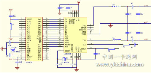 該模塊主要由MFRC500芯片及其天線電路組成。
