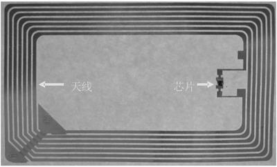 IC卡主要采用類似印刷電路板腐蝕成型的銅簿環狀天線和綁定在其上的裸芯片(見圖2)構成,外加卡的兩面彩塑封裝。