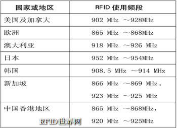表1 全球RFID頻率規(guī)劃情況