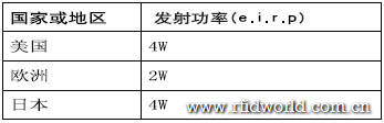 表4 其他國家或地區(qū)的RFID發(fā)射功率規(guī)定