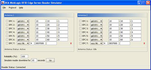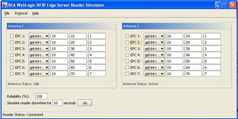 將模擬讀卡器的兩個(gè)天線的EPC都勾掉,并且將兩個(gè)天線的EPC值設(shè)置為一樣的,如下: