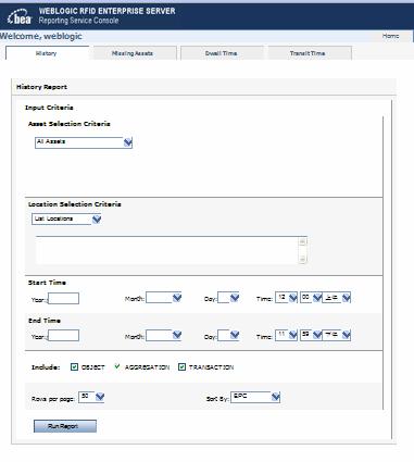 報(bào)表服務(wù)提供訪問(wèn)事件數(shù)據(jù)和主數(shù)據(jù)報(bào)表的圖形用戶界面。Enterprise Server提供四種類型的報(bào)表:歷史信息、丟失資產(chǎn)、停留時(shí)間和運(yùn)輸時(shí)間報(bào)表。