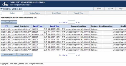 WebLogic RFID Enterprise Server處理來(lái)自RFID技術(shù)標(biāo)簽數(shù)據(jù),增加業(yè)務(wù)方面的信息,并提供自定義的報(bào)告給商業(yè)伙伴。Enterprise Server可以處理從多個(gè)來(lái)源的數(shù)據(jù),并把這種原始數(shù)據(jù)變成有用的信息,企業(yè)由此可以達(dá)到業(yè)務(wù)上的追蹤和決策的目的。