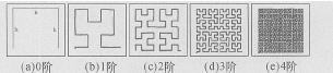 0至4 階的Hilbert分形結構如圖1 所示. Hil2bert天線是1 /3等邊分形天線, 0階Hilbert天線各邊長均為h. n階Hilbert天線總長度為