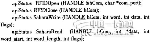 HP公司提供了掌上電腦的讀寫器.并將掌上電腦安裝在其中。通過這一單元來進行卡的讀寫。編寫卡讀寫軟件時,只須將隨讀寫器一起提供的動態連接庫安裝到臺式機上,并且連接到EVC4、0的工程內。對于此動態連接庫來說。常用的函數有四個: