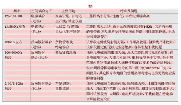 選擇不同的工作頻率,主要取決于各個頻率對應的電波傳播特性和RFID技術的工作機理,表2列出了RFID技術各個工作頻段對應的特性。