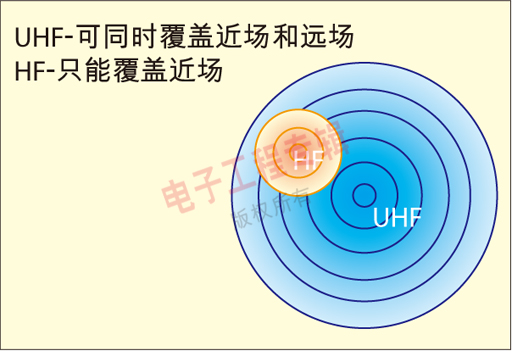 圖1:UHF Gen 2和HF覆蓋區(qū)域的區(qū)別。