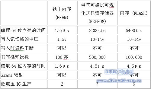 FRAM具有更快的存取時間,較低功耗,較小記憶格,極有效率的制程, 適合新一代的非接觸式智慧IC。