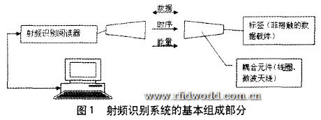射頻識別系統的基本組件包括標簽和閱讀器,其中標簽又稱為射頻標簽、應答器、數據裁體;閱讀器又稱為讀出裝置、掃描器、讀頭、通信器、讀寫器(取決于電子標簽是否可以無線改寫數據)。電予標簽與閱讀器之間通過耦合元件實現射頻信號的空間(尢接觸)耦合;住耦合通道內,根據時序關系,實現能量的傳遞和數據的交換。發生在閱讀器和標簽之間的射頻信號的耦合類型有兩種: