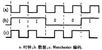 圖2 一個典型數據序列的Manchester編碼波形圖