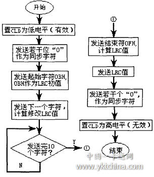 無數據輸出時,/CLD信號應一直為高電平,檢測到正確卡號后準備發送數據時把它置低,并維持到發送過程結束;CLK信號線在延時3—5 ms后開始以設定的頻率發出占空比為50% 的方波(時鐘),直到全部發送完畢;DATA在具體數據的前后,要發送5位以上“0”,作為同步信號,起始標志0BH(加校驗位,發送順序ll010),數據之后發送結束標志0FH(加校驗位,發送順序11 1 11),5位LRC,還有5位以上“0”.⋯0’的表示方法是在CLK上半周結束前,把DATA線置高,一直維持到下一CLK周期;“1”則是在CLK上半周結束前,把DATA線置低,一直維持到下一CLK周期.