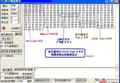 注意,以上顯示的數據中是I-CODE電子標簽/卡片的基本信息(電子標簽/卡片序列號碼UID),電子標簽卡片的其他一些特征數據,已經被過濾,不再回送給上位PC計算機或后臺數據控制器。對于卡片的其它存儲器區域的讀寫操作等另見說明。
