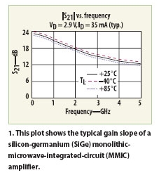隨著高速通信線路發展,人們對于提高通信線路帶寬的要求與日俱增。許多貿易公司提供一種單片微波集成電路(MMIC)晶體管放大器(內部匹配50Ω阻抗),設計用于提供數十倍的頻帶寬度。盡管這些放大器尺寸小成本低,但仍然存在性能上的局限性,其中潛在的弊端是這些放大器所顯現出的增益斜率。目前,眾多廠商在為寬帶通信方面的應用提供低成本的寬帶MMIC放大器,根據增益斜率特性曲線來看,MMIC放大器面臨的最大問題是隨著頻率的提高,增益會有所降低(圖1)。幸運的是,我們可以很方便地利用集總或分布式電路為這些器件提供增益均衡器。