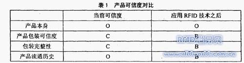 在采用RFID技術前后參與者對產品可信度的對比: