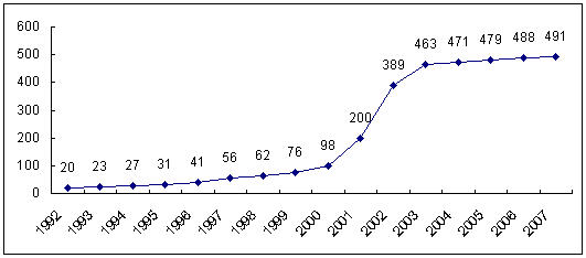 從廠商結(jié)構(gòu)來看,2007年中國集成電路企業(yè)TOP10的門檻已經(jīng)由2006年的3.3億元提高到4.5億元,與此同時,全國銷售收入過億元的IC設(shè)計企業(yè)數(shù)量在2007年已經(jīng)達(dá)到35家。