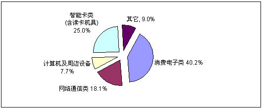 目前,中國集成電路設(shè)計產(chǎn)品涉及消費電子、通信、計算機、工業(yè)控制、電子儀器等眾多應(yīng)用領(lǐng)域。由于目前智能卡類(含讀卡機具)的芯片設(shè)計在設(shè)計業(yè)中占有很大一部分比重,因此將智能卡領(lǐng)域予以單列。從2007年國內(nèi)IC設(shè)計行業(yè)這些應(yīng)用領(lǐng)域的表現(xiàn)來看,消費電子、智能卡與讀卡機具仍是目前國內(nèi)IC設(shè)計業(yè)最大的兩個產(chǎn)品應(yīng)用門類。但這兩大領(lǐng)域2007年的銷售收入增幅卻大大減緩,特別是受第二代身份證換發(fā)基本完成的影響,2007年智能卡及讀卡機具領(lǐng)域的銷售收入增幅只有3.9%。相對而言,網(wǎng)絡(luò)通信領(lǐng)域的IC設(shè)計收入在2007年大幅增長了40.5%,成為當(dāng)年國內(nèi)IC設(shè)計行業(yè)的最大亮點。