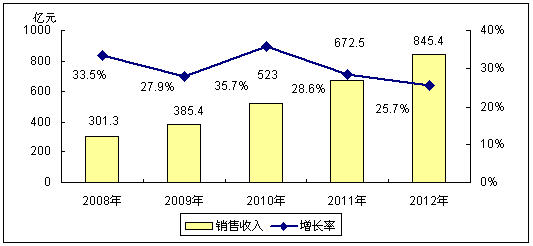圖7 2008-2012年中國集成電路設(shè)計業(yè)規(guī)模預(yù)測