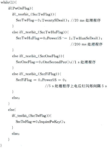 為提高CPU的工作效率和系統(tǒng)任務的處理速度,本系統(tǒng)使用分時處理流程。代碼如下: