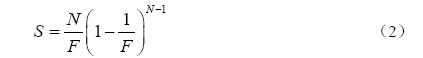 實(shí)際情況中,由于各標(biāo)簽距閱讀器距離不同,近距離標(biāo)簽發(fā)送的信息可能覆蓋了遠(yuǎn)距離標(biāo)簽發(fā)出的信息,即使是時(shí)隙沖突,閱讀器也可能正確識(shí)別近距離標(biāo)簽的信息。同樣,由于其他環(huán)境噪聲的影響,即使在一個(gè)時(shí)隙內(nèi)只有一個(gè)RFID 標(biāo)簽應(yīng)答,閱讀器也可能無法閱讀成功。在不考慮這兩種不理想條件即捕獲效應(yīng)和環(huán)境噪聲的影響[4],若整個(gè)信息幀的時(shí)隙數(shù)設(shè)定為F,則閱讀N 個(gè)RFID 標(biāo)簽時(shí)每個(gè)信息幀內(nèi)成功、空閑和沖突的時(shí)隙數(shù)分別為:
