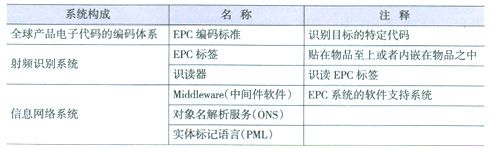 致力于自動識別技術的開發和研究的Auto-ID Center在美國統一代碼委員會(UCC)的支持下,將RFID技術與Internet網結合,提出了產品電子代碼(EPC)概念。EPC系統是一個非常先進的、綜合性的和復雜的系統。其最終目標是為每一單品建立全球的、開放的標識標準。它由全球產品電子代碼(EPC)體系、射頻識別系統及信息網絡系統三部分組成,主要包括六個方面,見表1。