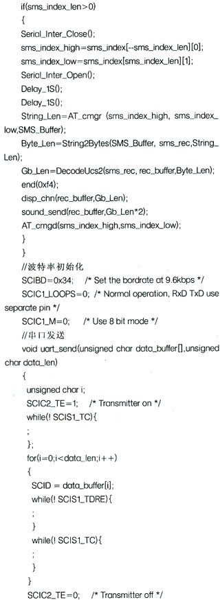 車輛信息的傳輸與控制主要依靠的是Siemens公司的TC35i GSM Modem模塊。單片機通過串口對TC35i寫AT指令,從而達到信息的傳輸與接收的目的。