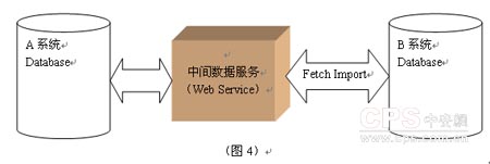 圖7可以簡單地看出“通用數(shù)據(jù)交換系統(tǒng)”的基本功能及工作原理,從第三方系統(tǒng)的數(shù)據(jù)安全性考慮,數(shù)據(jù)交換系統(tǒng)盡量避免直接對第三方的數(shù)據(jù)庫進(jìn)行操作。由此,我們可以引出“通用數(shù)據(jù)交換系統(tǒng)”中間件的概念。