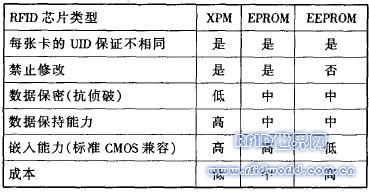 2.1 XPM—RFID技術(shù)與傳統(tǒng)EEPROM—RFID技術(shù)的比較